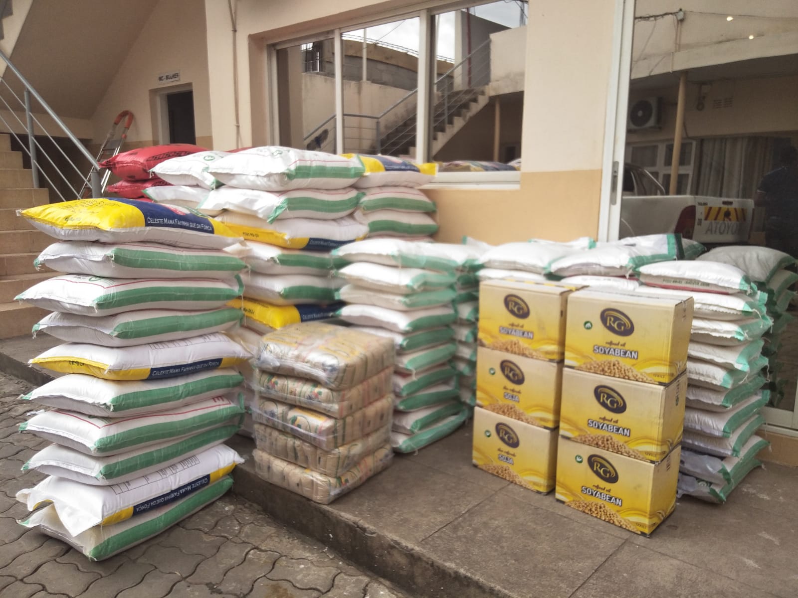 Mahando informou que os produtos são compostos por “50 sacos de arroz, 80 sacos de farinha de milho, óleo e açúcar, em resumo e para melhor dizer temos 1250kg de farinha de milho, 750kg de arroz e mais de 100kg de açúcar e óleo alimentar, foram contribuições dos membros e funcionários internos”. (Malito João)