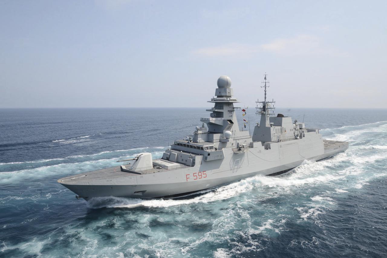 A fragata Rizzo, da classe FREMM e lançada ao mar em 2017, desempenha actualmente o papel de navio-capitânia da missão europeia, que se encontra sob comando italiano, confiado ao Contra-Almirante Davide Da Pozzo.