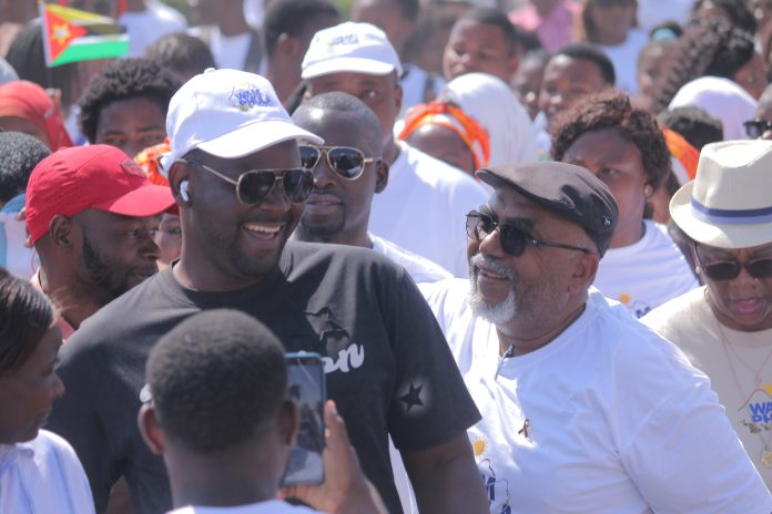 Com tio Salim, mais de 20 mil pessoas marcham, na designada “Marcha da Alegria”, do recinto do aeroporto até a faixada frontal do edifício onde funciona o gabinete do governador.