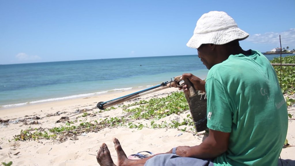 “Passa bastante tempo que sou pescador, mas quando iniciei era mesmo pesca normal e nesses dias não estava a ver nada porque está cada vez mais difícil encontrar peixe, mas quando descobrimos essa pistola conseguimos ter muito peixe, até porque a embarcação usamos somente para chegar no meio do mar, mas depois de chegar lá usamos somente essa pistola e é muito bom, porque na verdade mesmo esse peixe ser tão grande não escapa, a gente consegue matar e com isso conseguimos organizar a nossa vida, estudamos e compramos muitas coisas através da pesca com pistola.”